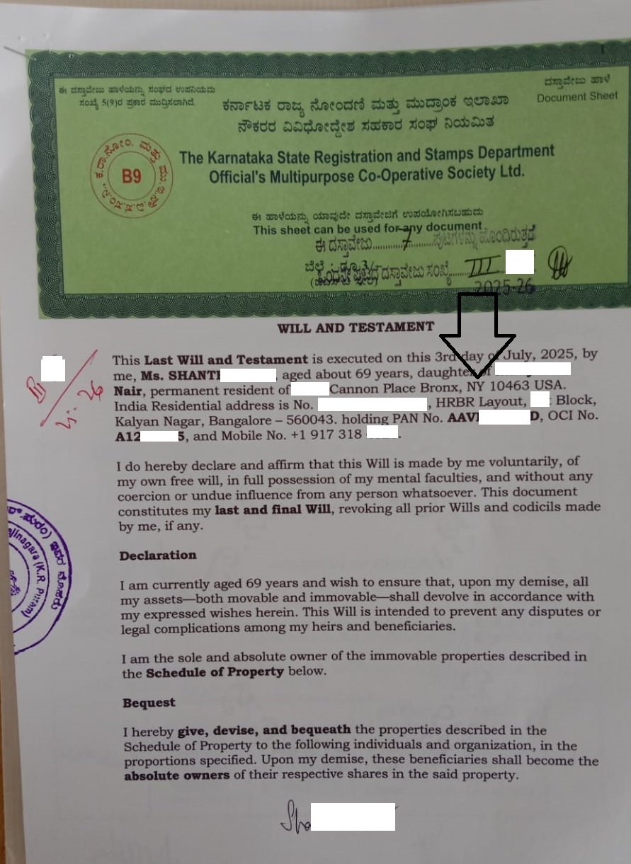 One of my NRI clients, a long-time resident of the USA, recently decided to execute and register her Will in India. Although registration of a Will is not mandatory, she opted to register it to ensure clarity and avoid any potential disputes over her assets after her lifetime.