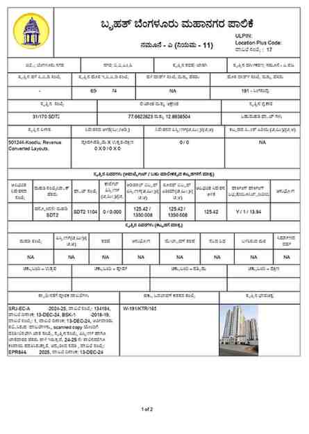 The e-Khata is the computerized version of the Khata certificate. It is the only document now recognized for property registration and other legal transactions, such as: