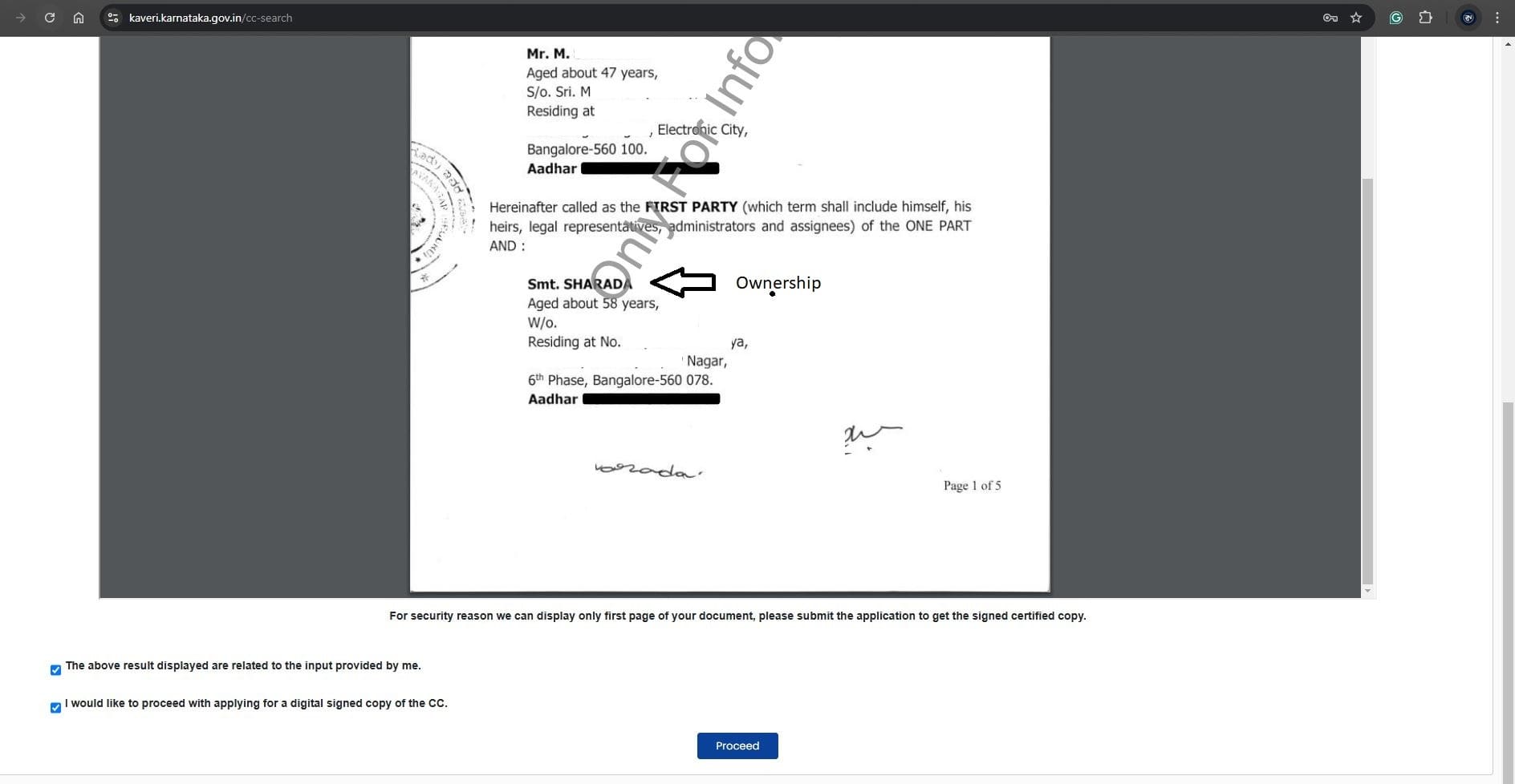 Next, we used the registration number from the EC to download the Certified Copy of the Deed.