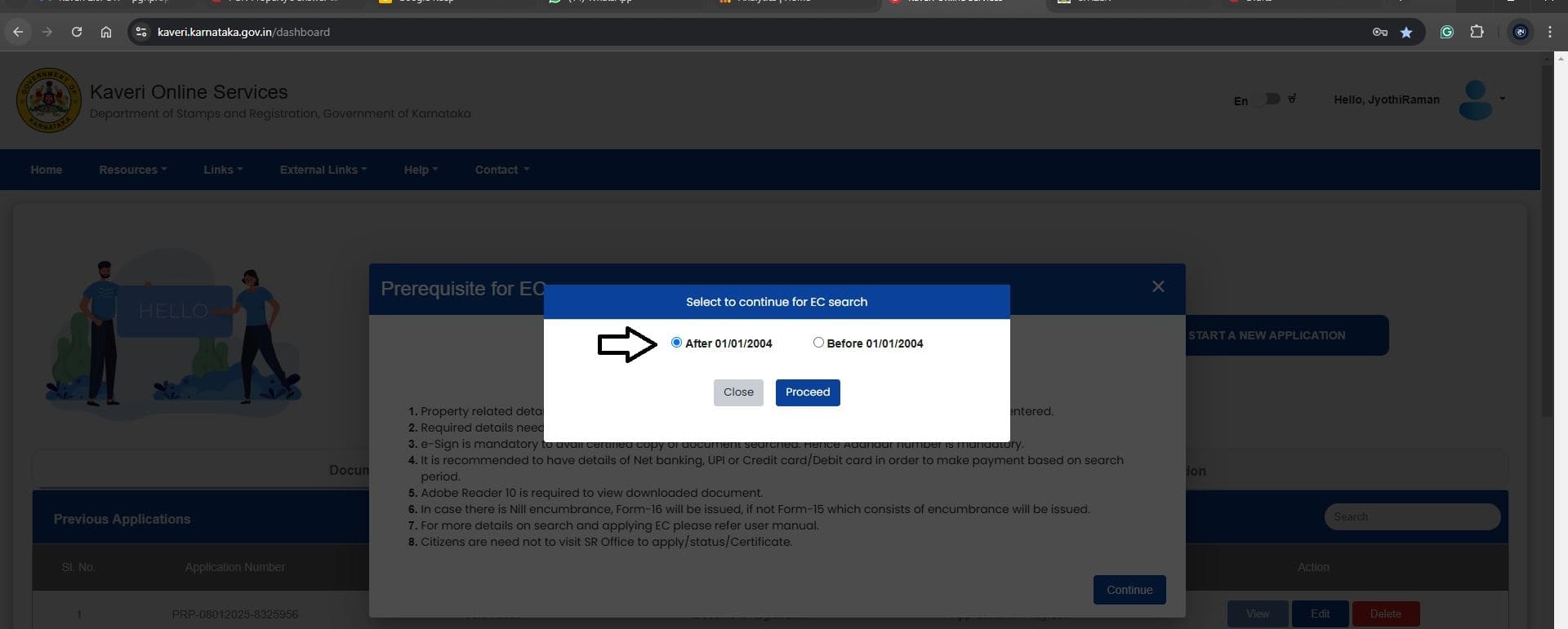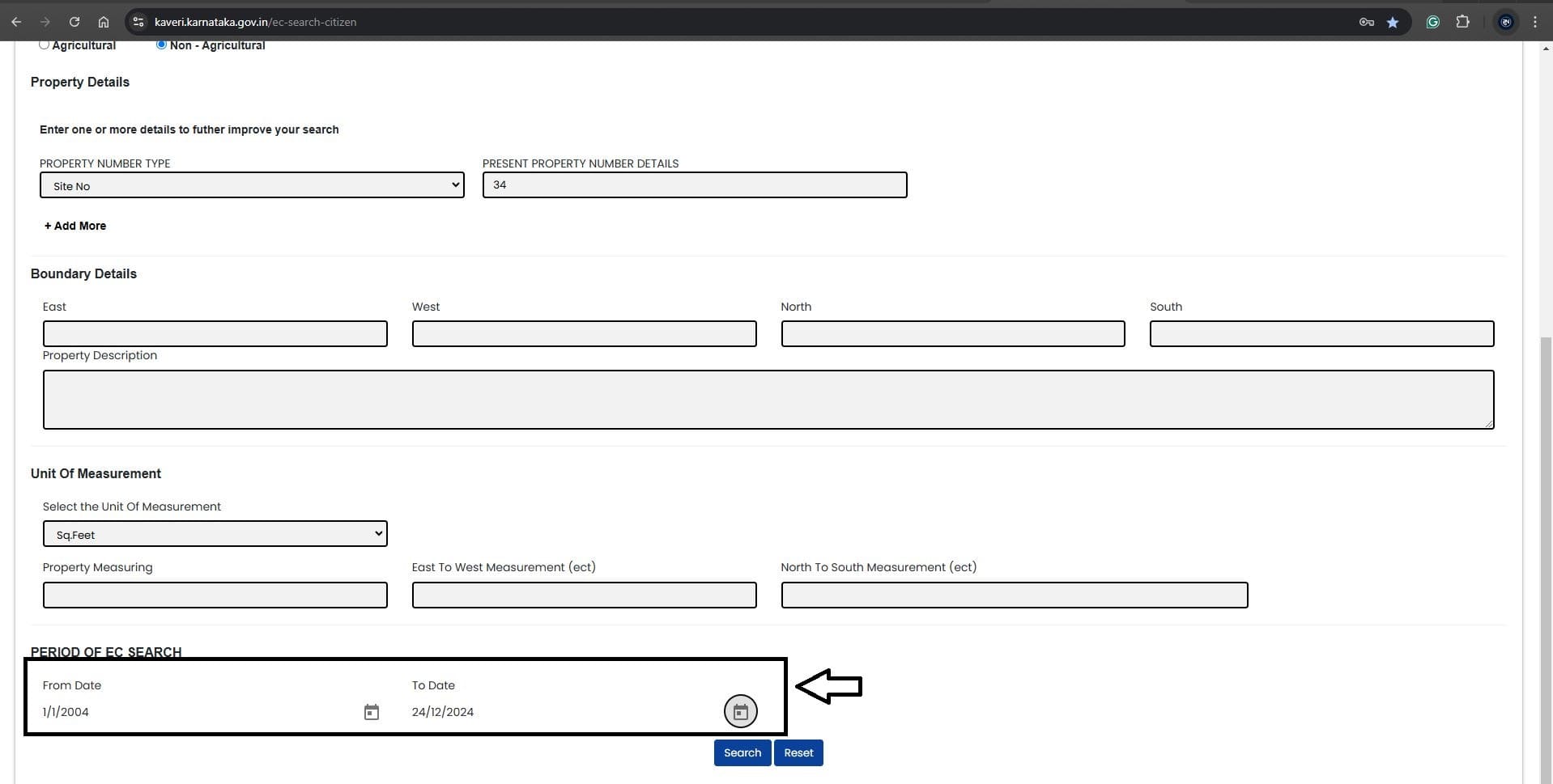 Since the property was registered in 2024–25 (after 2004), we selected ‘After 01/01/2004’ (see highlighted section in the screenshot below)