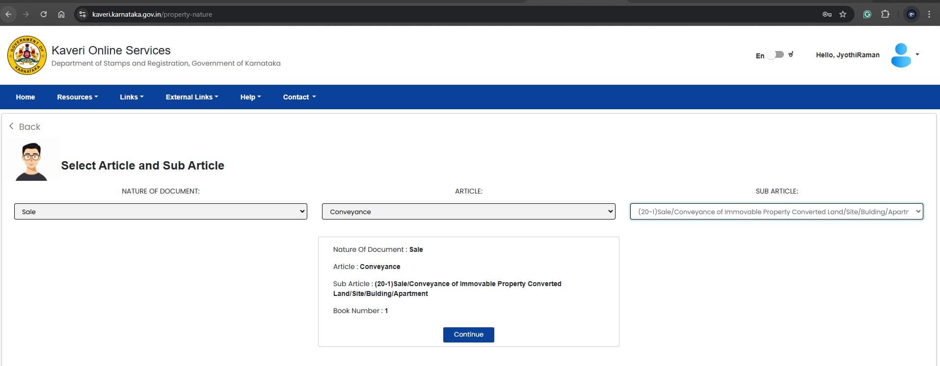 Select any Article and Sub-Article. For example, we chose Sale and Conveyance of Immovable Property (see highlighted section in the screenshot below).