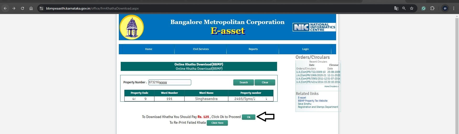 The BBMP eKhata can be downloaded by paying Rs.125 on the BBMP eAasthi portal.
