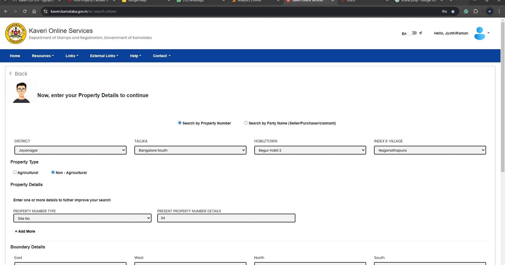 - District - The property comes under Jayanagar District Jurisdiction, we selected “Jayanagar” from the dropdown list