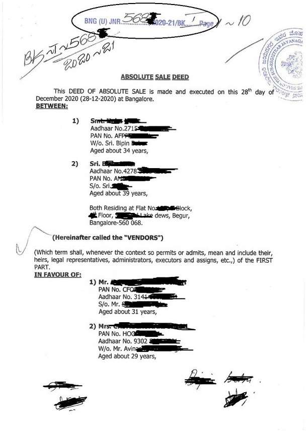 sample image of a sale deed with the number highlighted