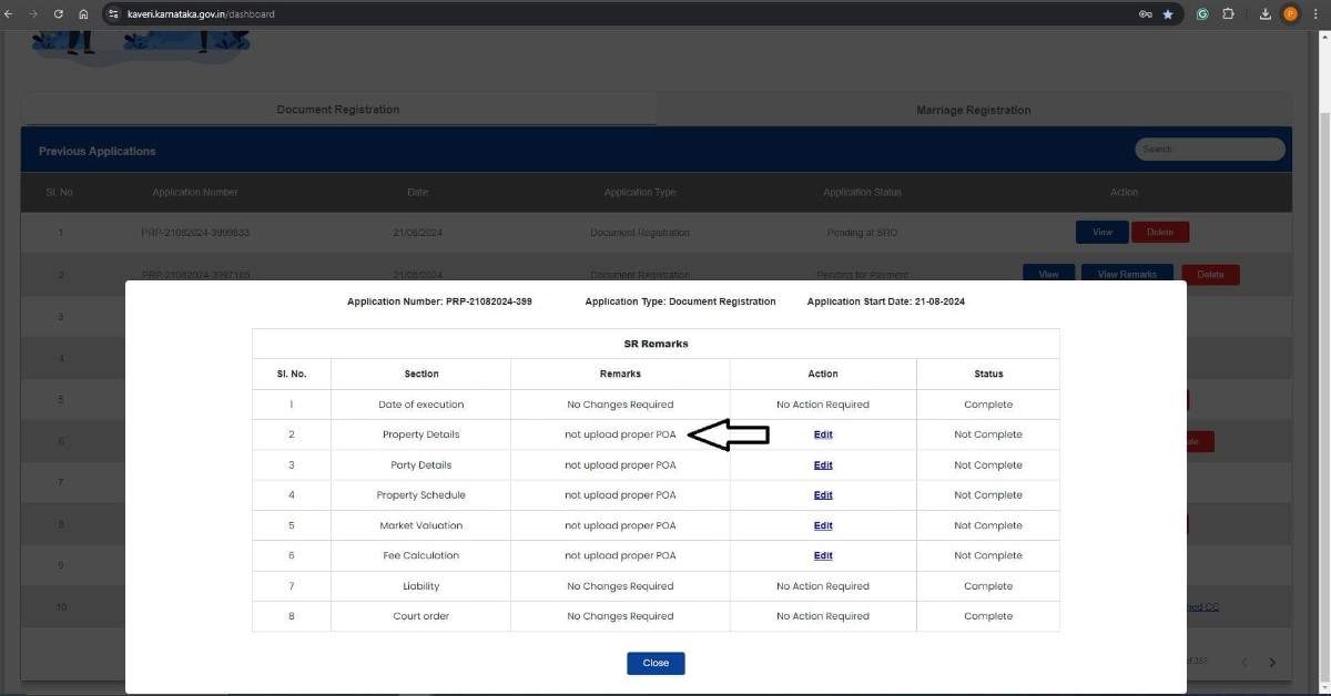 Unfortunately, the sub-registrar’s office rejected this GPA during the Sale Deed registration process. The system displayed the following remark: “Not upload proper POA”, indicating that only a registered Power of Attorney is acceptable for such transactions.