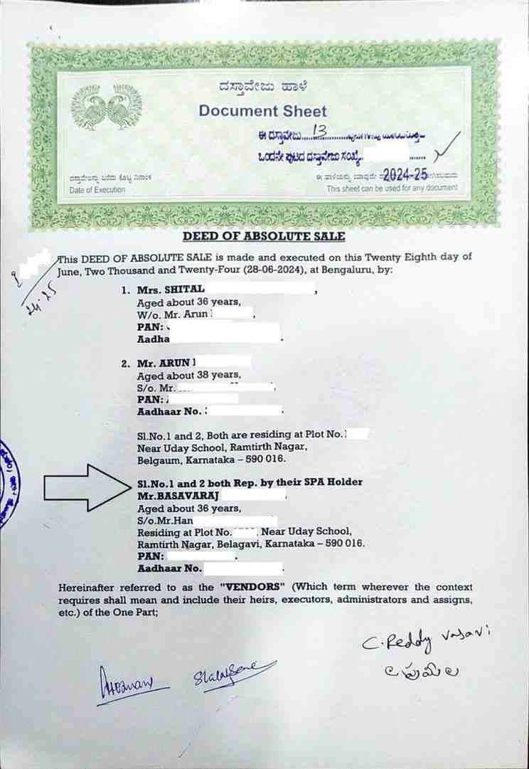 Using this notarized SPOA, we successfully registered the Sale Deed at the sub-registrar’s office in Bangalore. Below is the registered Sale Deed referencing the SPOA: