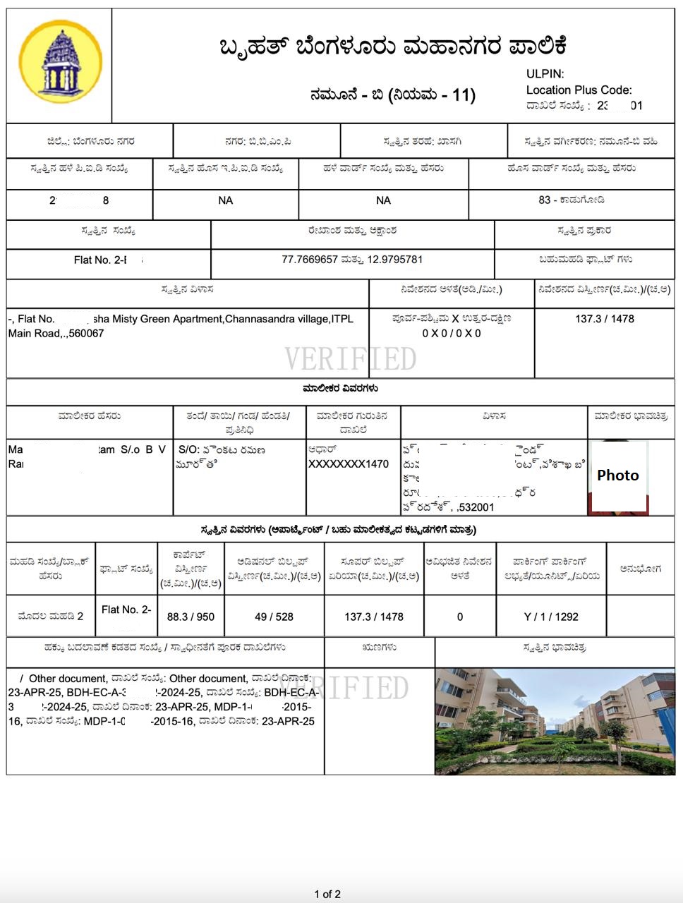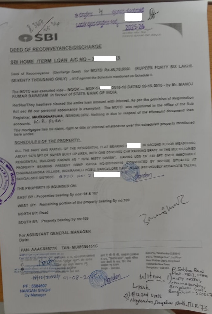With the final e-Khata in hand, we proceeded to the sub-registrar’s office to register the Reconveyance Deed. See the image below for reference.