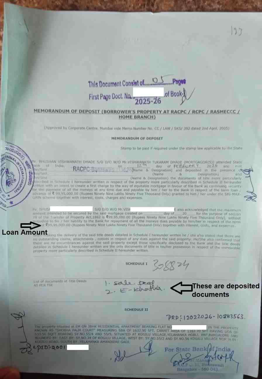 We have highlighted the loan amount mentioned in the registered MODT document, which forms the basis for calculating the stamp duty and registration charges. This will help readers clearly understand how the government fees are calculated during MODT registration.
