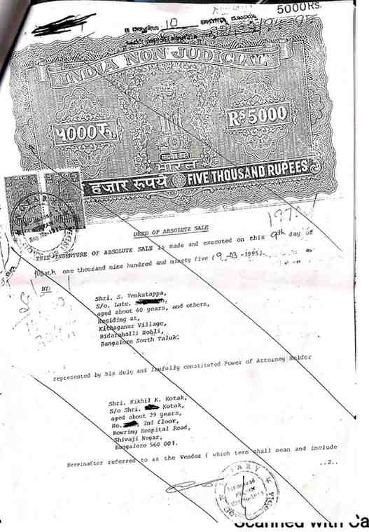 The buyer’s bank required either the original Parent Deed or a certified copy. Therefore, we applied for a certified copy at the Shivaji Nagar Sub-Registrar Office, Bangalore, where the property was registered in 1995. Refer to the below Sale Deed copy