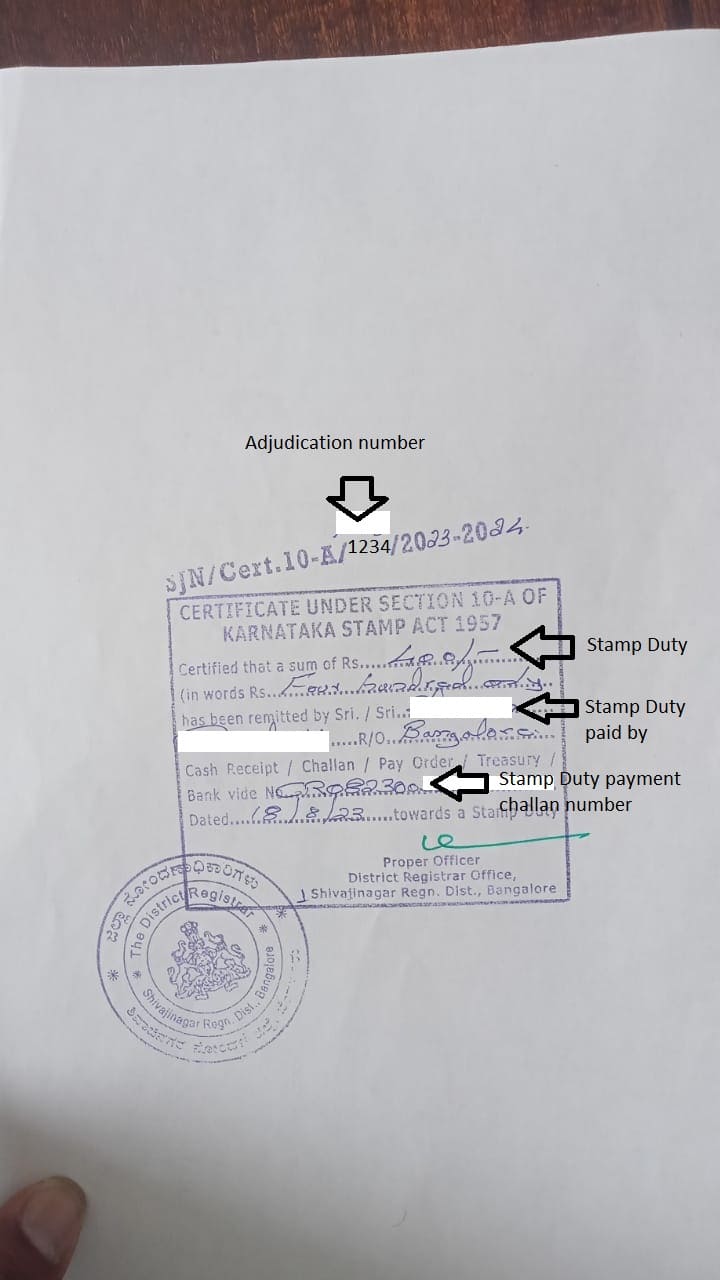- Applicable stamp duty must be paid at the time of adjudication (varies based on the number of executants).