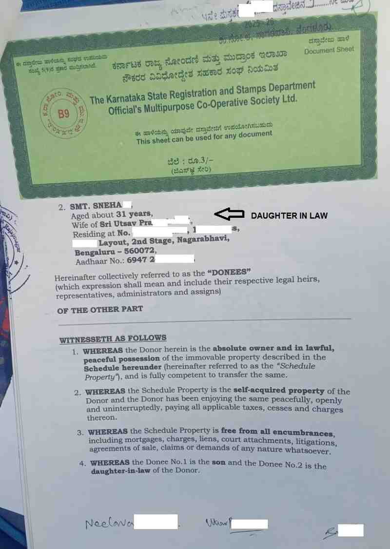 Gift Deed Charges for Family Members in Bangalore