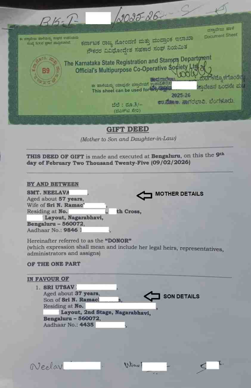 If you are planning to transfer property through a Gift Deed, understanding the applicable stamp duty and registration charges in Bangalore is essential before proceeding. The overall cost mainly depends on the relationship between the Donor (the person gifting the property) and the Donee (the person receiving the property).