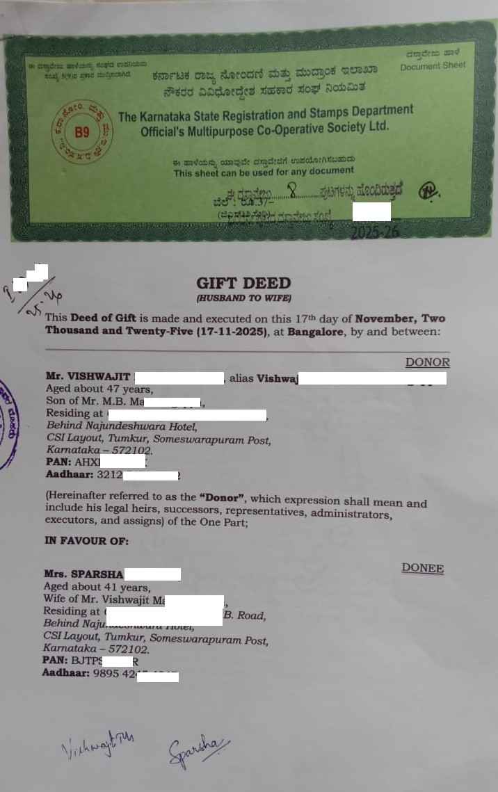We provide professional support for Gift Deed drafting, verification, and registration procedures in Bangalore.