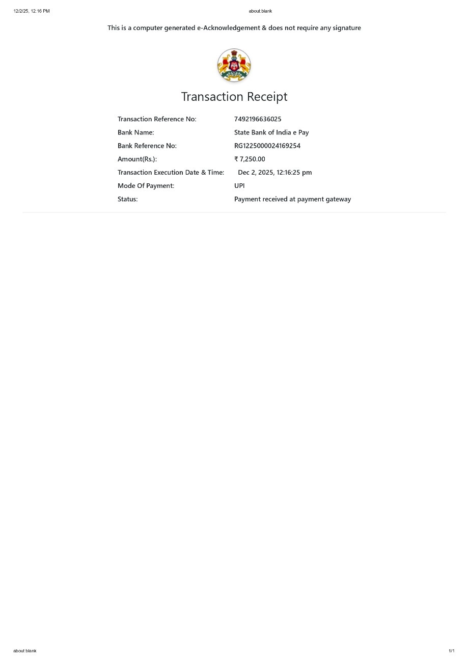 Recently, we assisted in registering a Gift Deed from a husband to his wife. For this transaction, the total government charges paid were Rs. 7,250, which included stamp duty, surcharge, cess, registration fee, and scanning charges