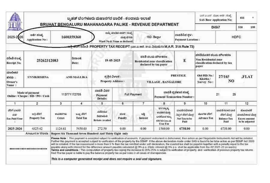 • Pay the property tax up to the current financial year, as it is mandatory for downloading the e-Khata once approved.