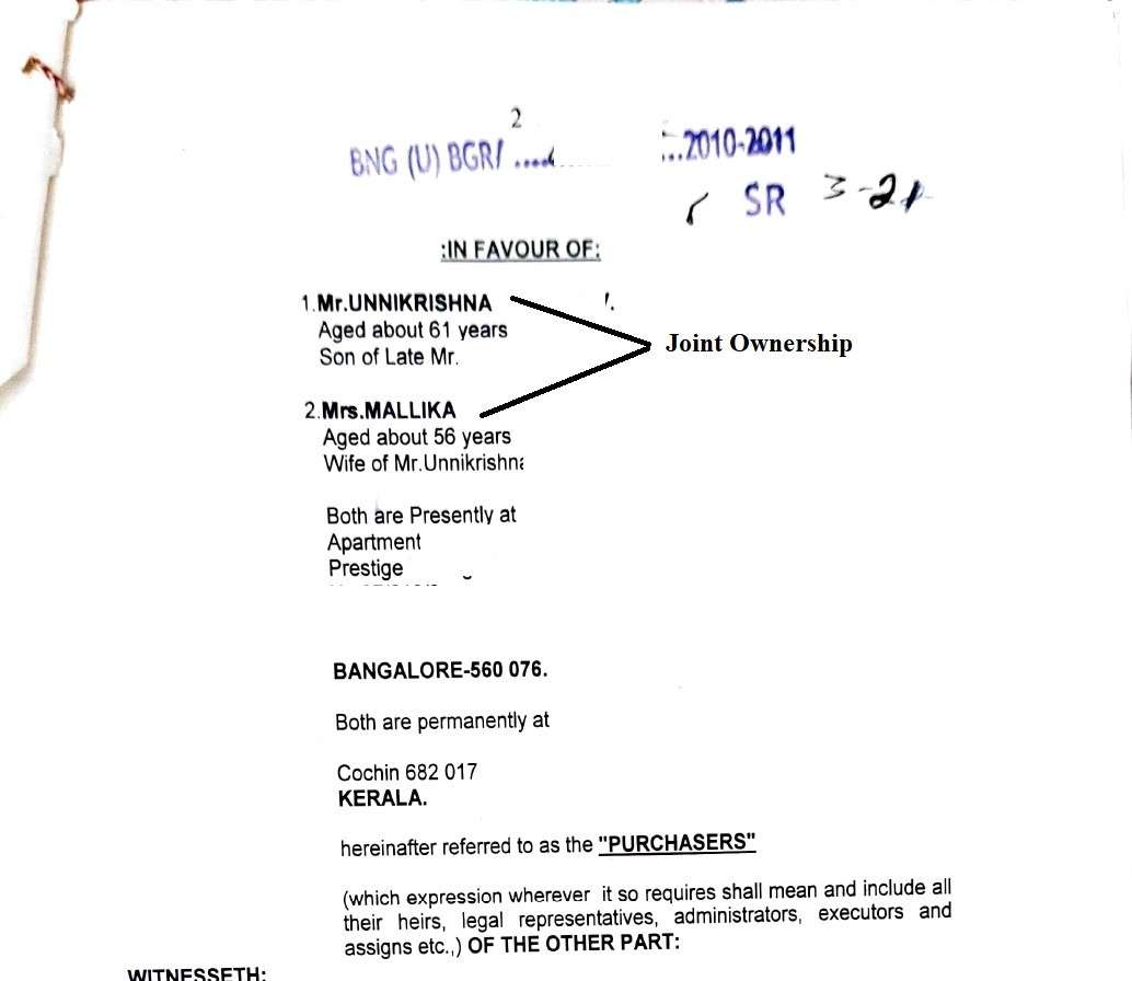 My client, Mrs. Mallika, and her husband, Mr. Unnikrishnan, had jointly purchased a 3BHK flat in Bangalore in February 2011. Sadly, Mr. Unnikrishnan passed away in September 2024.
