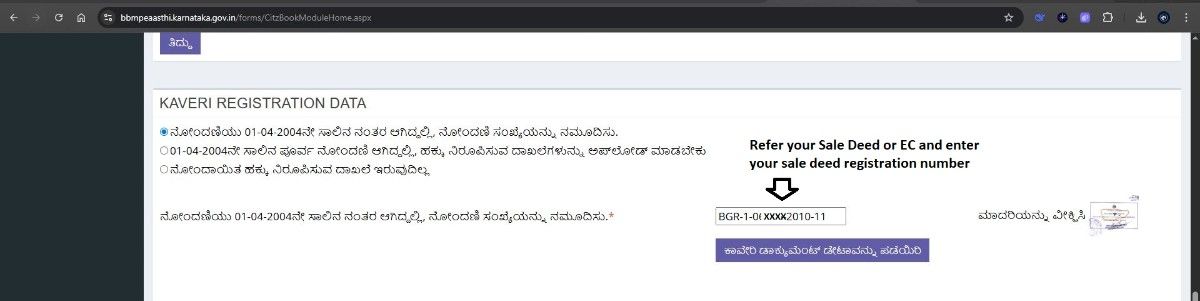 • Entered Deed Registration Number: The sale deed registration number was provided to validate ownership