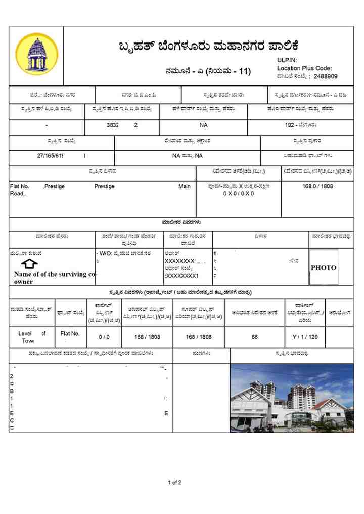 • If the deceased had been the sole owner of the property, the e-Khata transfer would need to include all legal heirs. Typically, this includes the spouse and children.