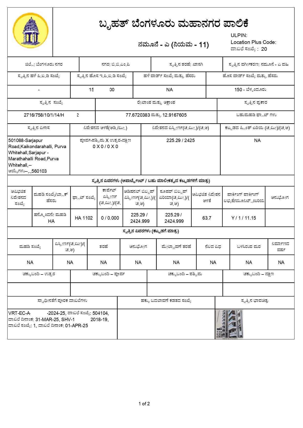 The same name “ARAVIND” is reflected in BBMP tax record on bbmp website. refer to below image in circle