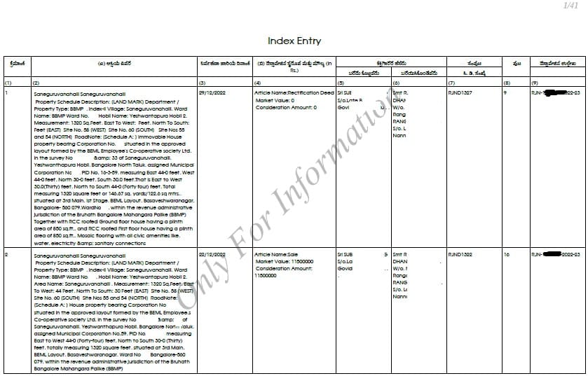 After registration, we extracted the Encumbrance Certificate (EC) index.