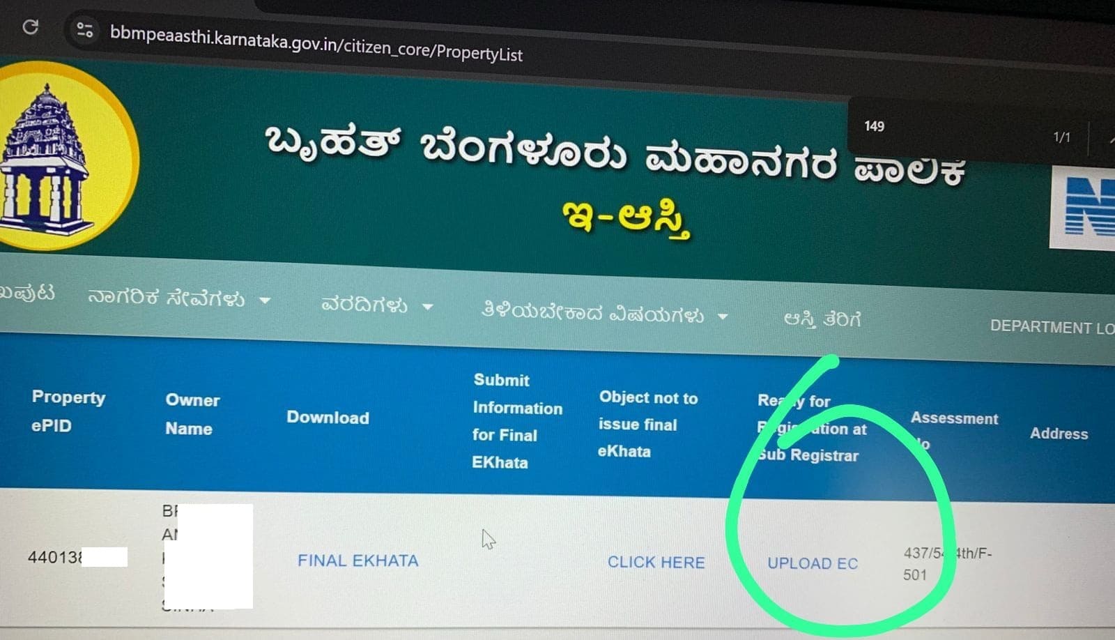 - Applied for the Latest EC: We obtained the latest Encumbrance Certificate (EC) and uploaded it to the eAasthi portal.